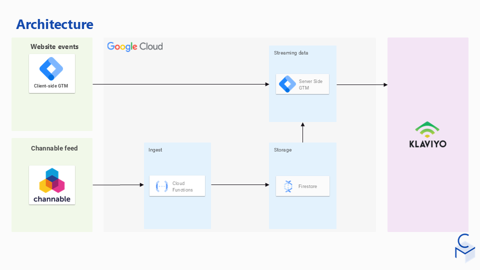- Custom Variable Template in SGTM: Connects to Firestore and Klaviyo, gathering necessary data using a Promise setup to handle multiple products in events.